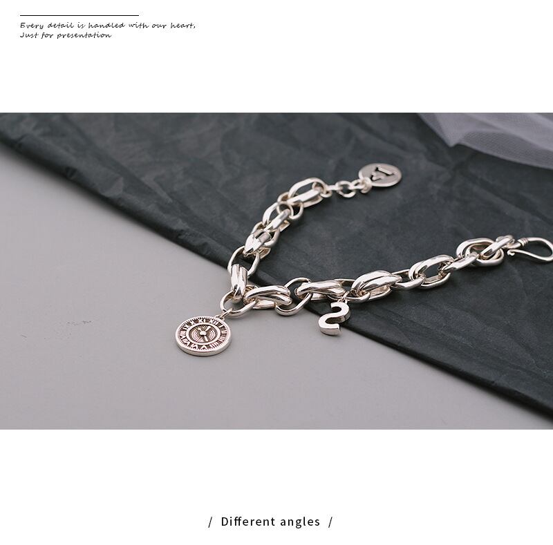 LIVVY シルバーカラー トレンディな太いチェーン 英字 A S ブレスレット カップル ベルダイヤル ジュエリー 銀 Liv90406362688