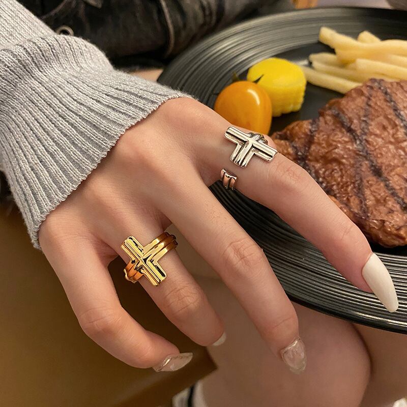 LIVVY シルバーカラークリエイティブアジャスタブルリング女性クロスシェイプミニマリスト不規則なファインジュエリー誕生日ギフト 指輪 銀 Liv57044627279