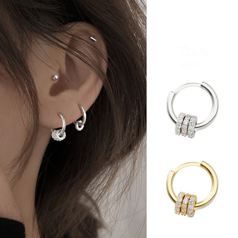 LIVVY シルバー色可憐な小さなジルコン象眼ラウンドサークルフープイヤリング女性ゴールドカラー気質ジュエリー 指輪 銀 Liv29587793899