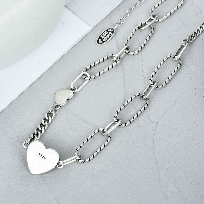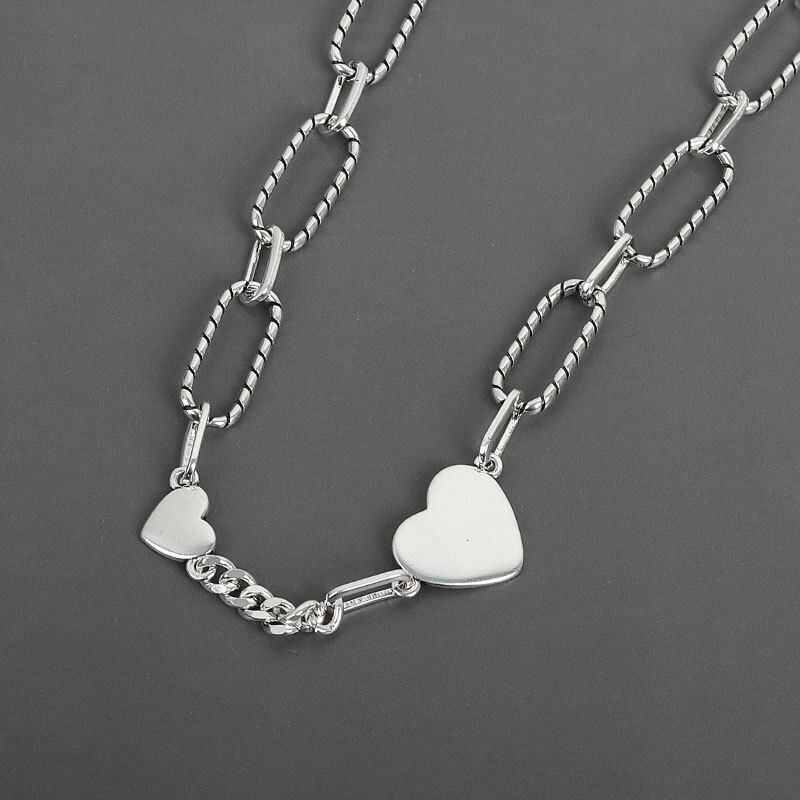 LIVVY ミニマリストのシルバー色の愛のハート形のネックレスの魅力の女性トレンディなジュエリーパーティーアクセサリーギフト レース 銀 Liv97964949628