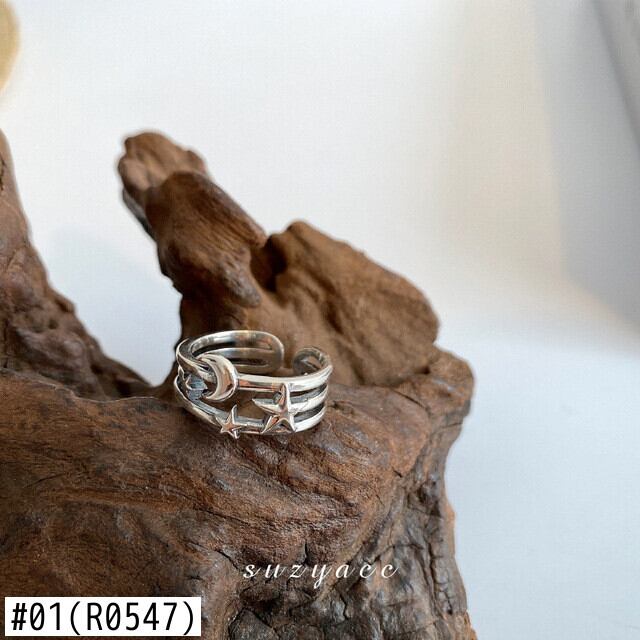 LIVVY シルバーカラーパーティーリング女性ドット星フランスシンプルな波パターンクリエイティブジュエリーギフトトレンド 指輪 銀 Liv44681575849