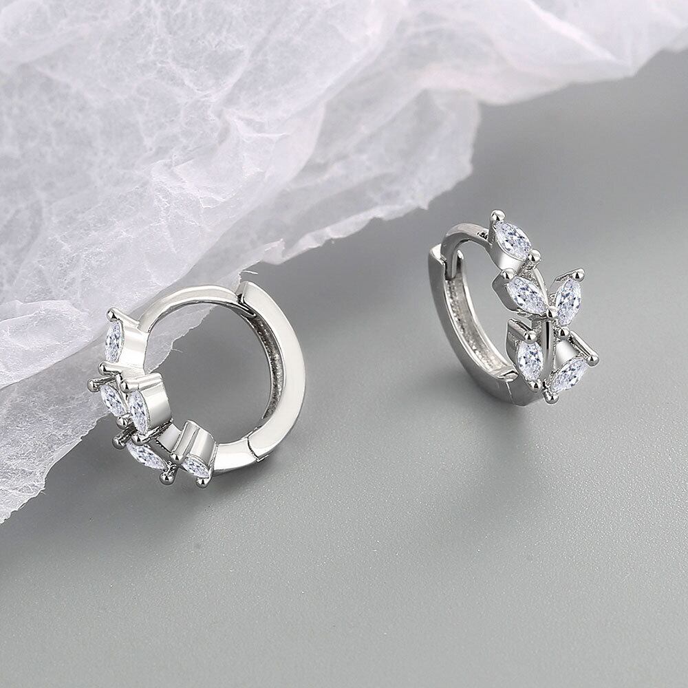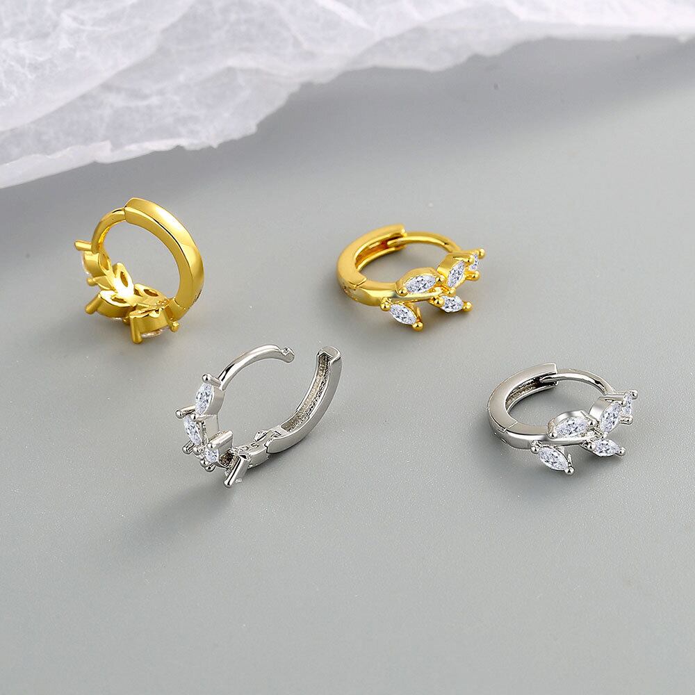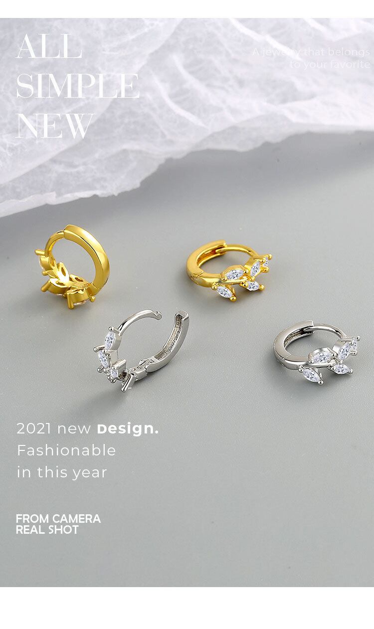 LIVVY シルバーカラー ホットリーフ ジルコン フープ イヤリング シンプル エレガンス ゴージャス ジュエリー バレンタイン ギフト 指輪 銀 Liv8388509448