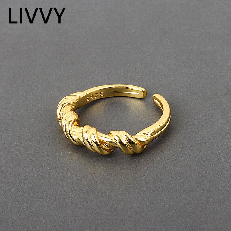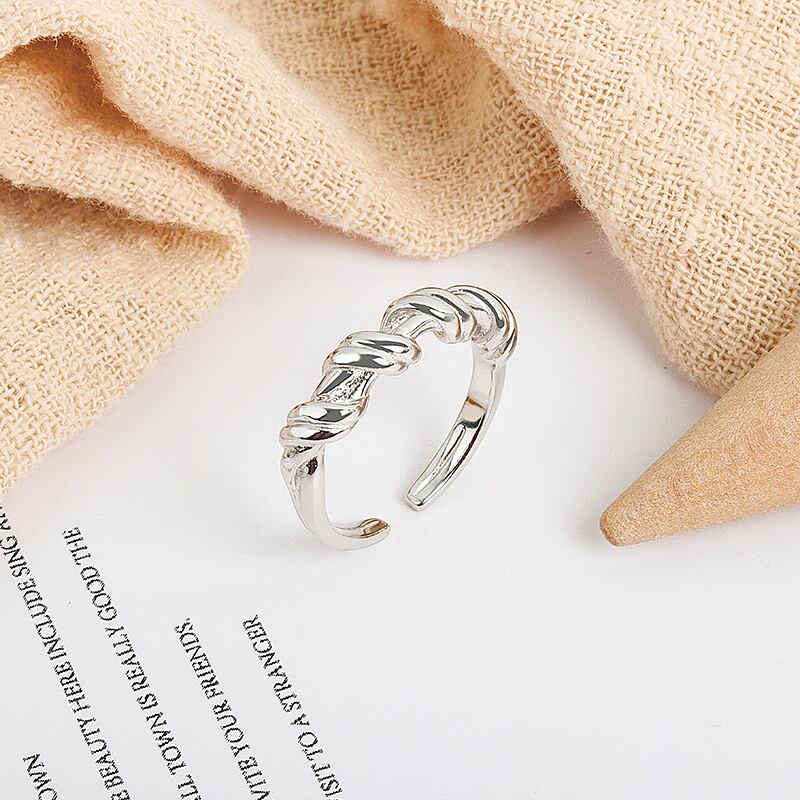 LIVVY シルバーカラー渦巻きツイスト形オープン人差し指リングジュエリーゴージャスなチャーム女性リング 指輪 銀 Liv21382174011