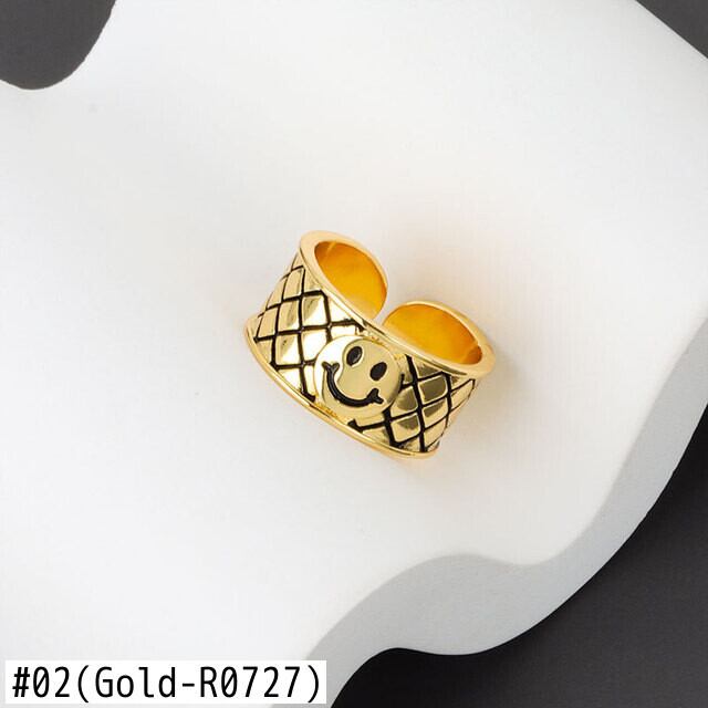LIVVY シルバーカラーチェック柄スマイルリングチャーム女性単にトレンディなジュエリーパーティーアクセサリーギフト 指輪 銀 シンプル Liv3260430706