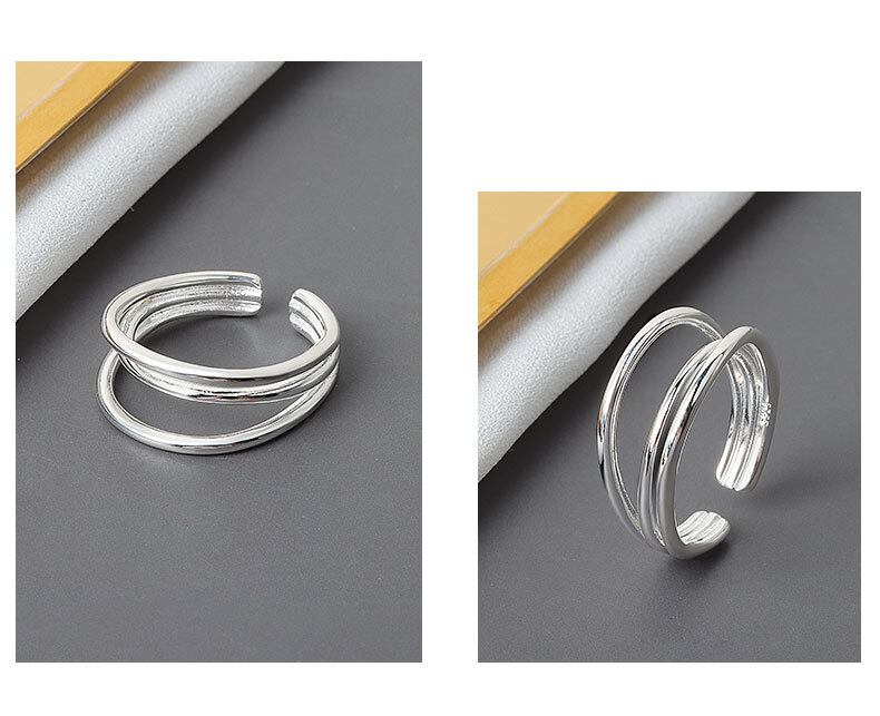 LIVVY シルバーカラーリングクリエイティブ多層巻きライン幾何手作り女性カップル調整可能なトレンド アジャスタブル マルチレイヤー 指輪 銀 Liv56378310661