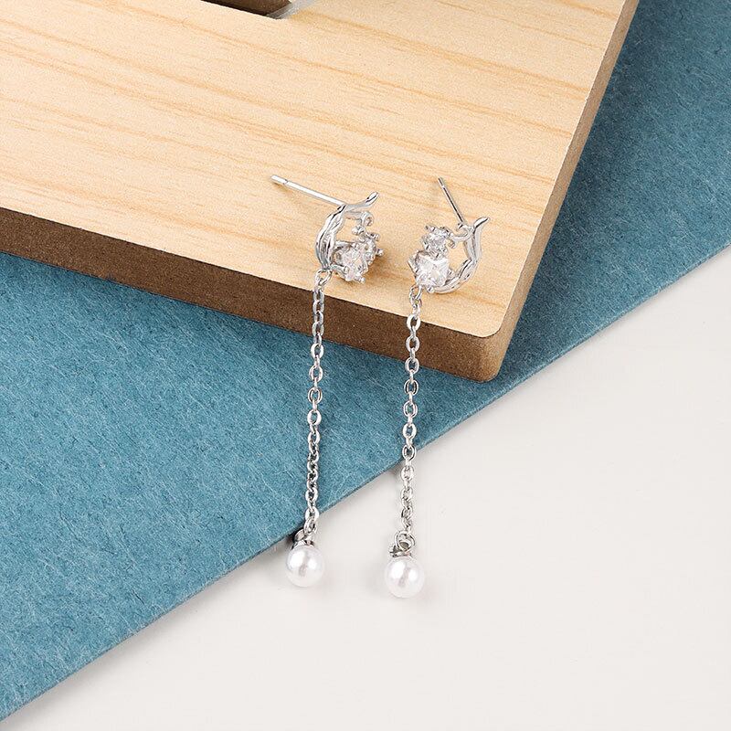 LIVVY シルバーカラージルコン Tel 模造真珠イヤリングチャーム女性トレンディジュエリーパーティーアクセサリーギフト パール 指輪 銀 Liv7641568585