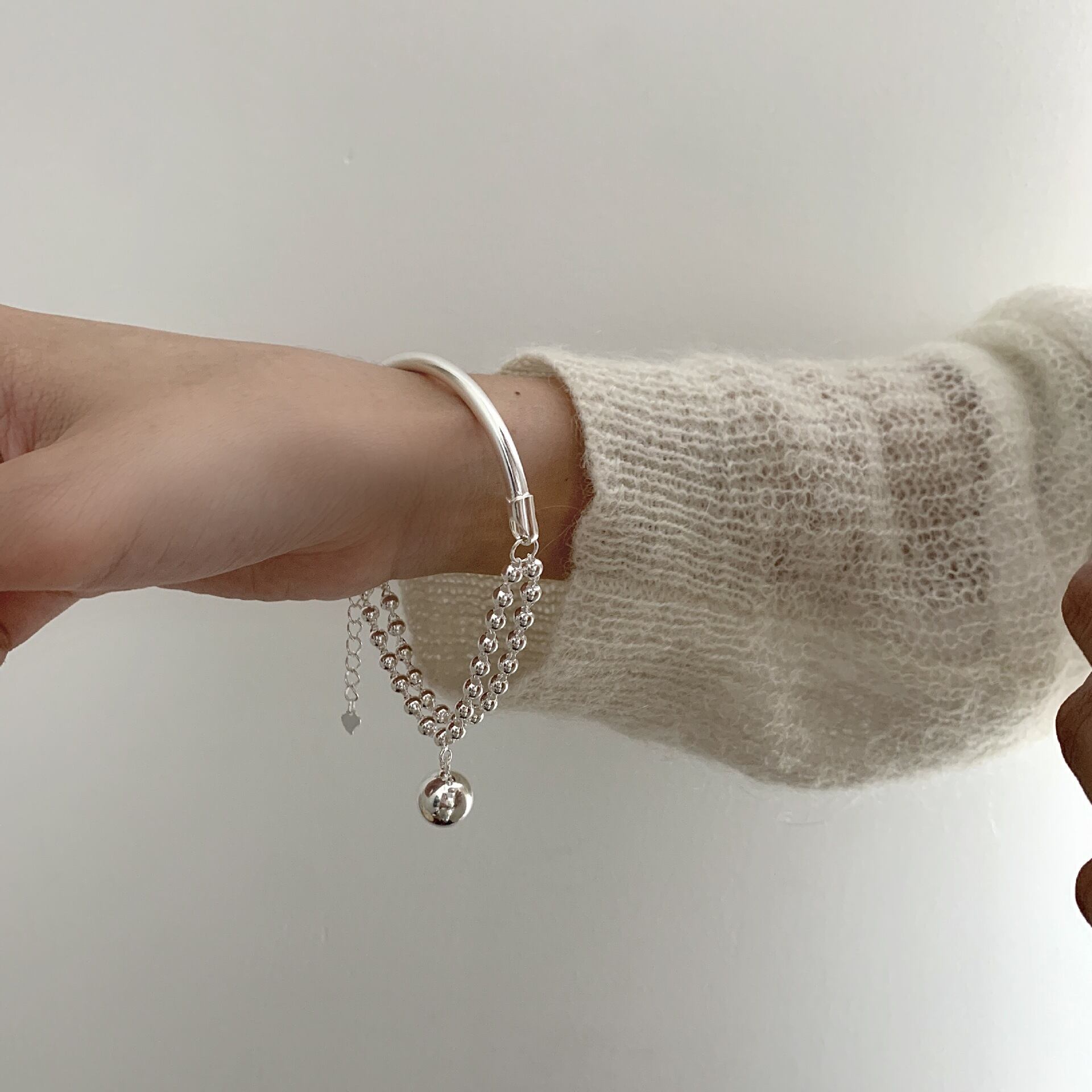 LIVVY シルバーカラーラウンドビーズチェーンボールペンダントブレスレット女性手作りジュエリーギフトサイズ調整可能 アジャスタブル 銀 Liv36895215599