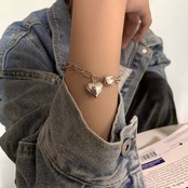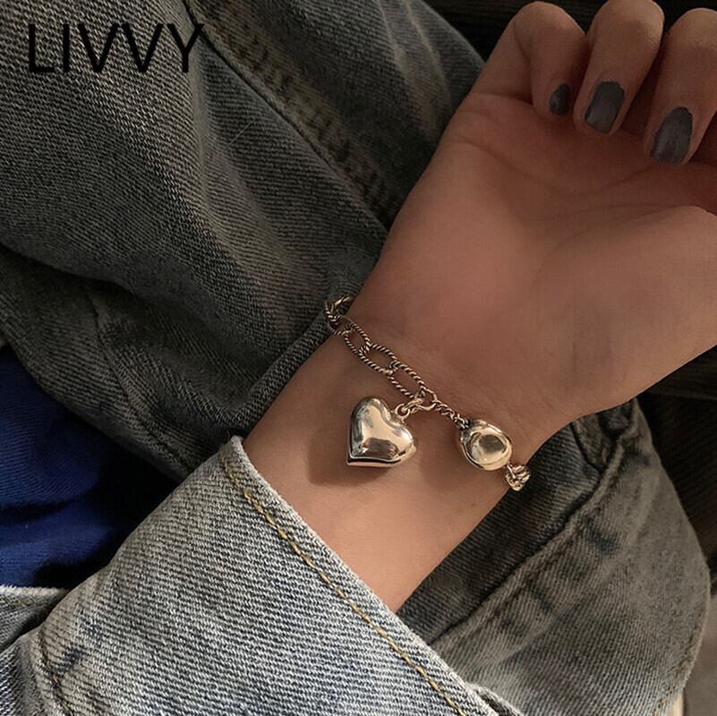 LIVVY シルバーカラービッグラブハートブレスレット女と男シンプルな気質ヒップホップレトロジュエリー誕生日ギフト 銀 Liv61350068305