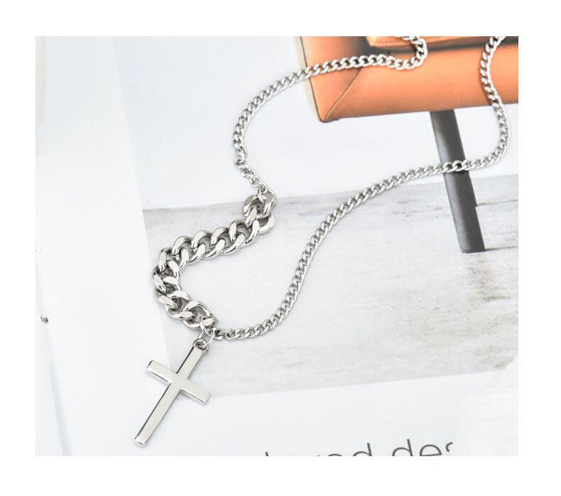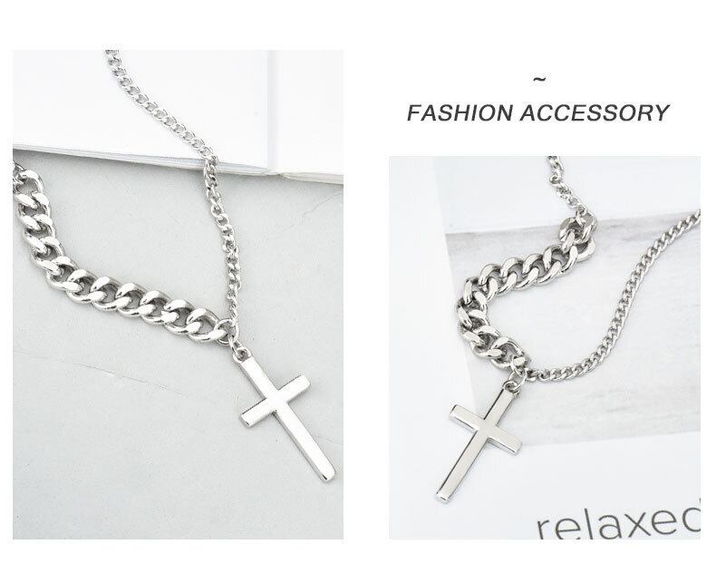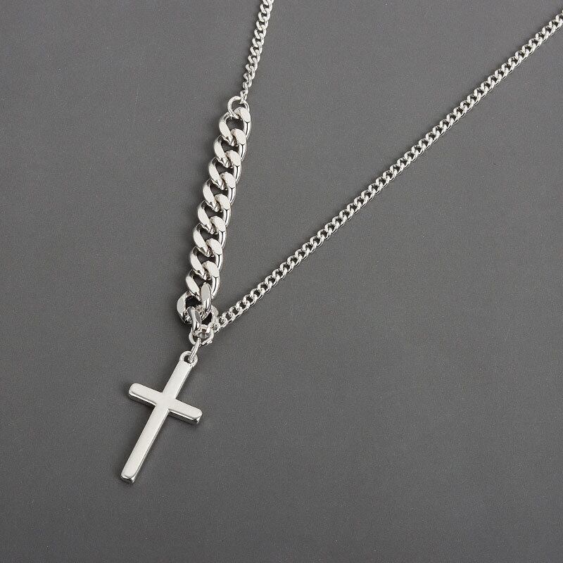 LIVVY シルバーカラー クロス ペンダント ネックレス ミニマリスト カップル ハンドメイド ジュエリー ギフト レース 銀