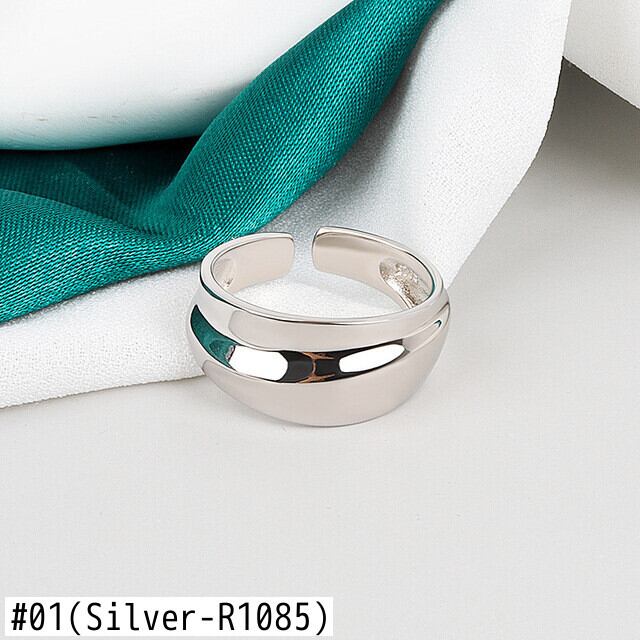 LIVVY シルバーカラー 不規則な滑らかなワイドリング シンプル ライト ラグジュアリー 調節可能 ジュエリー ギフト アジャスタブル 指輪 銀