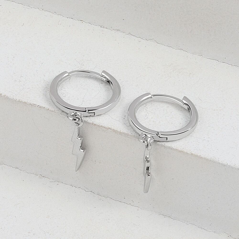LIVVY シルバーカラー波雷形状ペンダントイヤリング気質パーティー手作りジュエリー 指輪 銀
