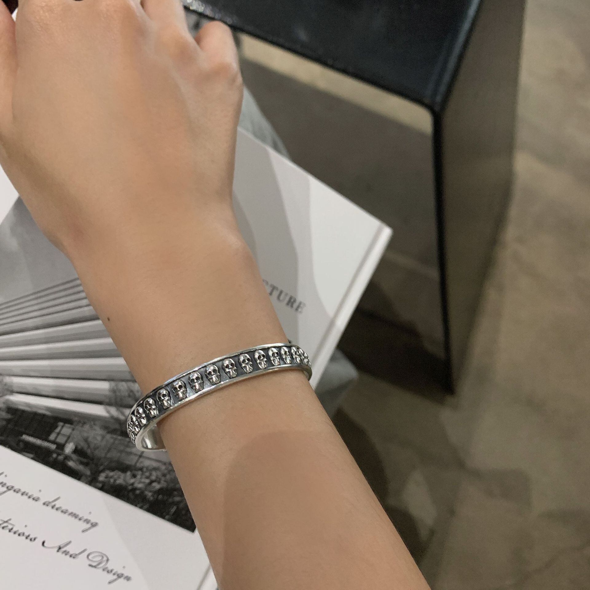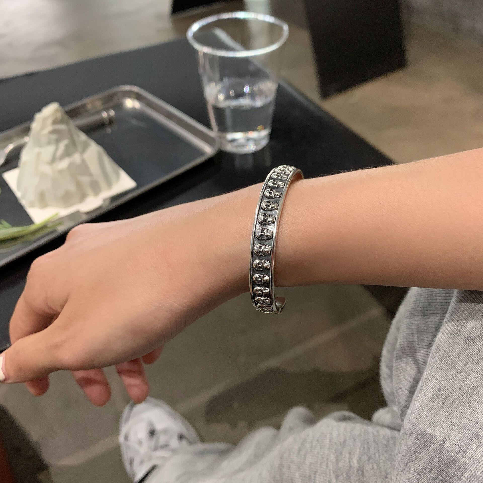 LIVVY タイのシルバーカラーののバングルジュエリーレトロシンプルな調節可能なスカルホットブレスレット アジャスタブル 銀