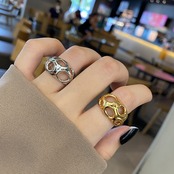 LIVVY シルバーカラークリエイティブ不規則な幾何学中空オープンリングトレンドレトロウェディングジュエリーギフト 指輪 銀