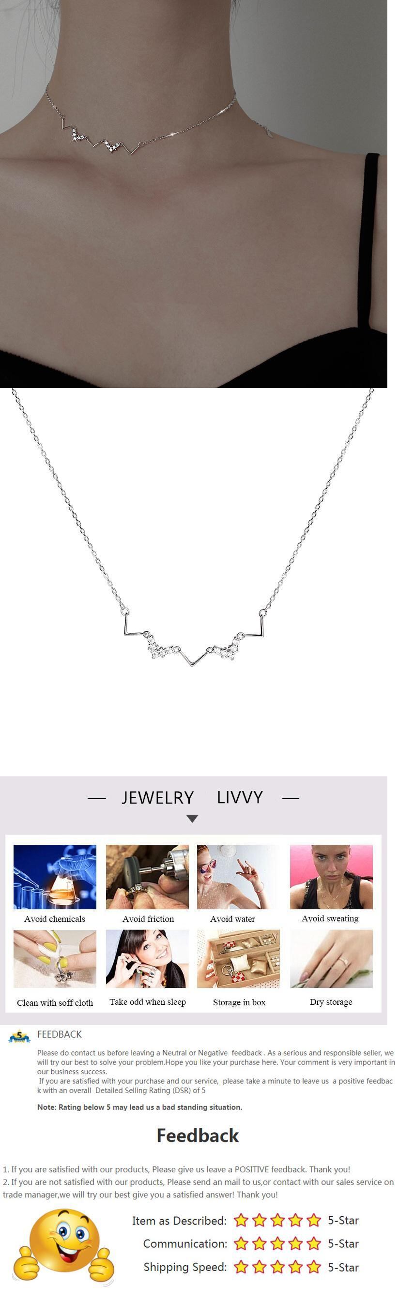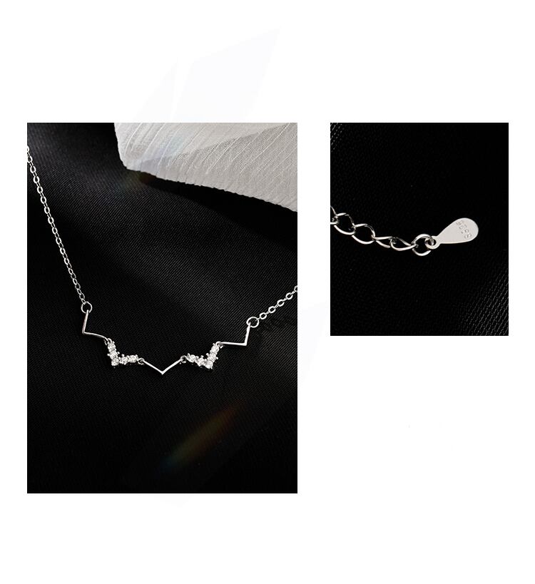 LIVVYSilver カラーウェーブシェイプペンダントネックレスレター V マイクロ象眼光沢あるジルコンパーティージュエリー レース シルバー 銀