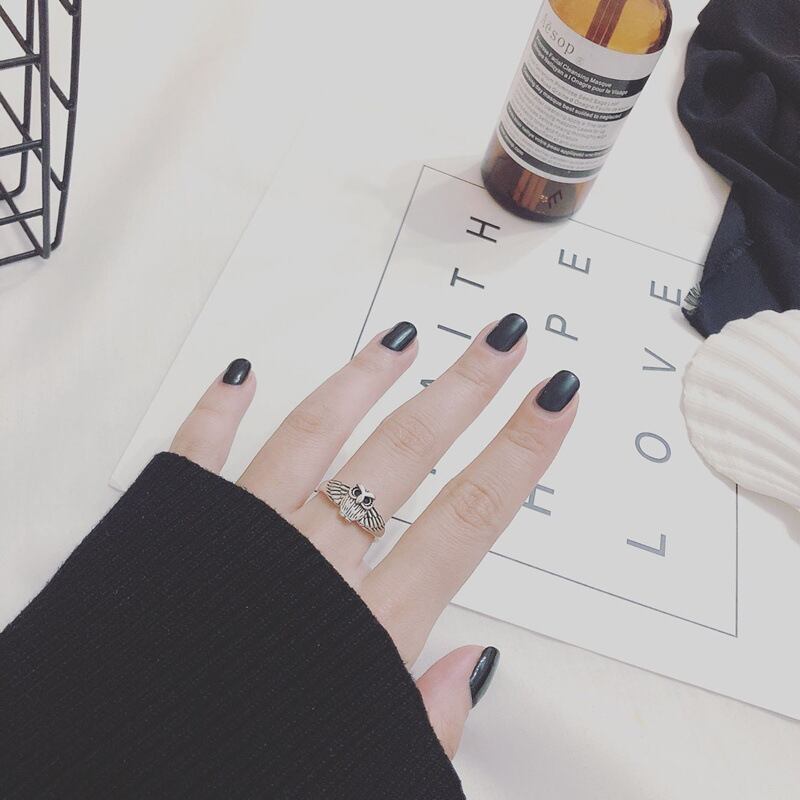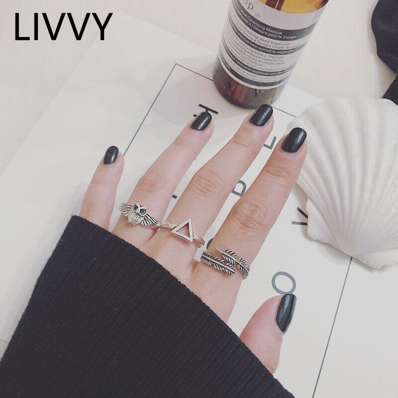 LIVVY シルバーカラーリングフクロウ羽中空三角形男性タイシルバーリングレトロジュエリーギフト 指輪 銀