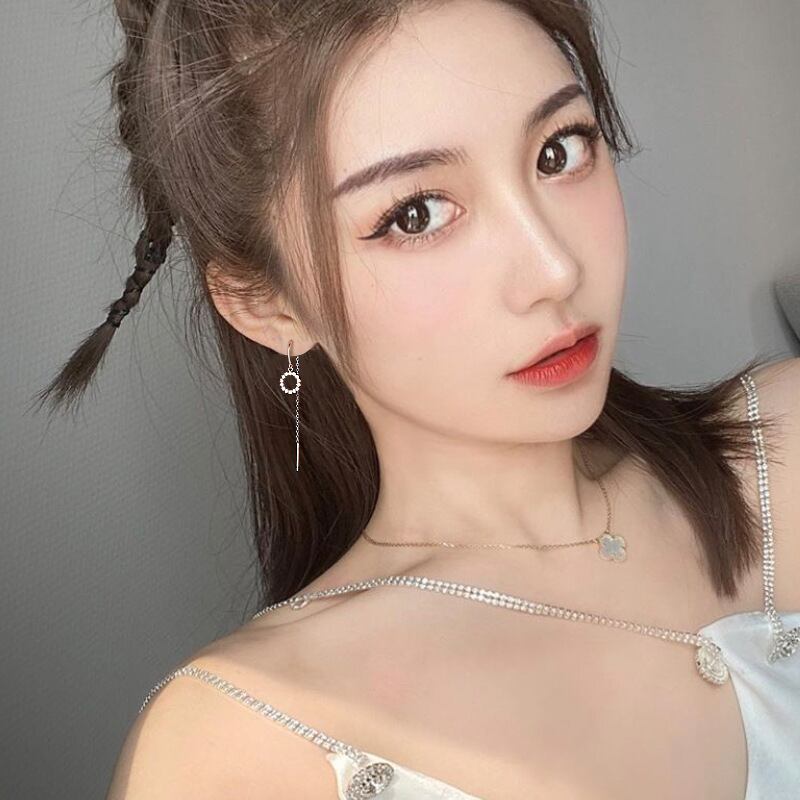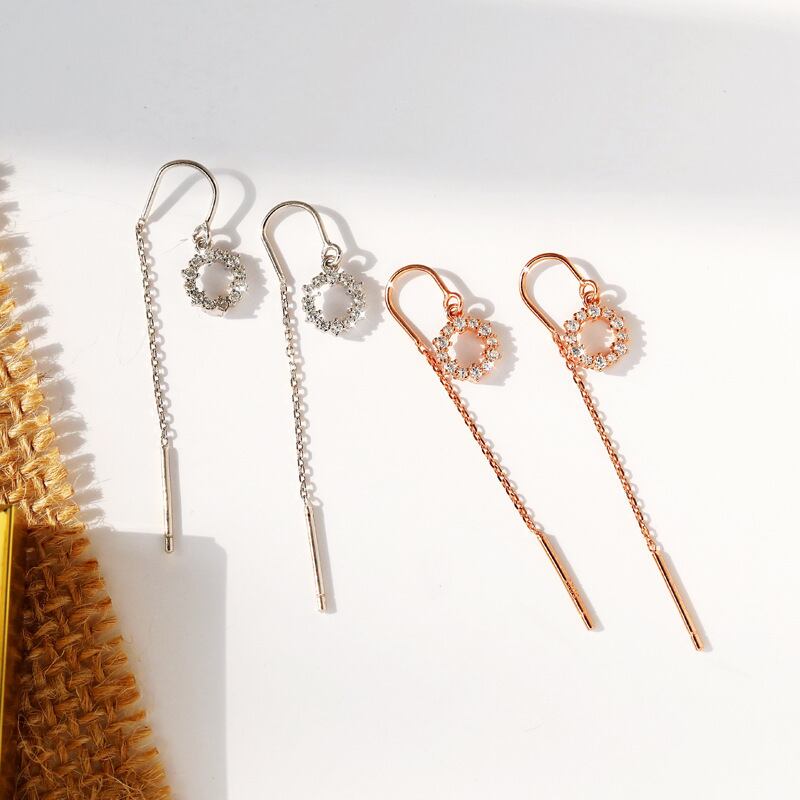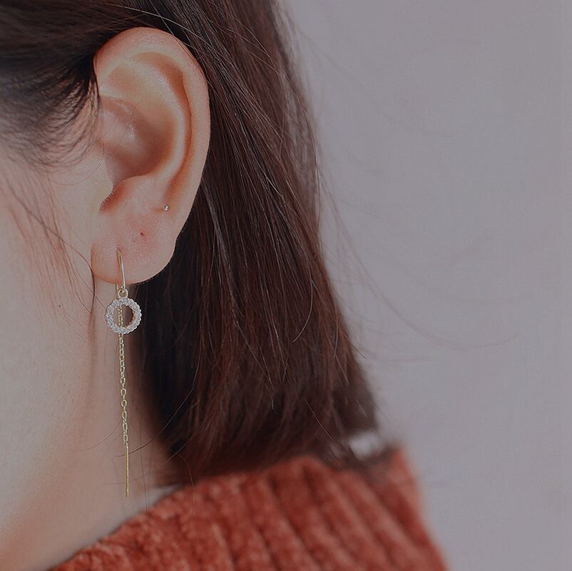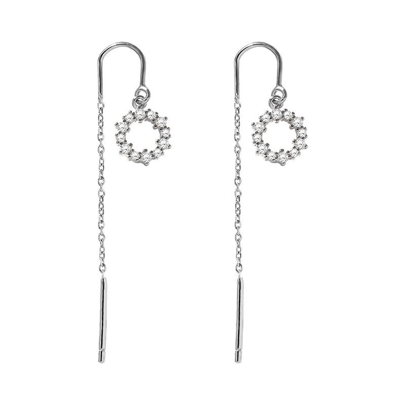 LIVVY シルバーカラーロングテルジルコンラウンドイヤリング気質チャームジュエリーギフト 指輪 銀