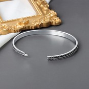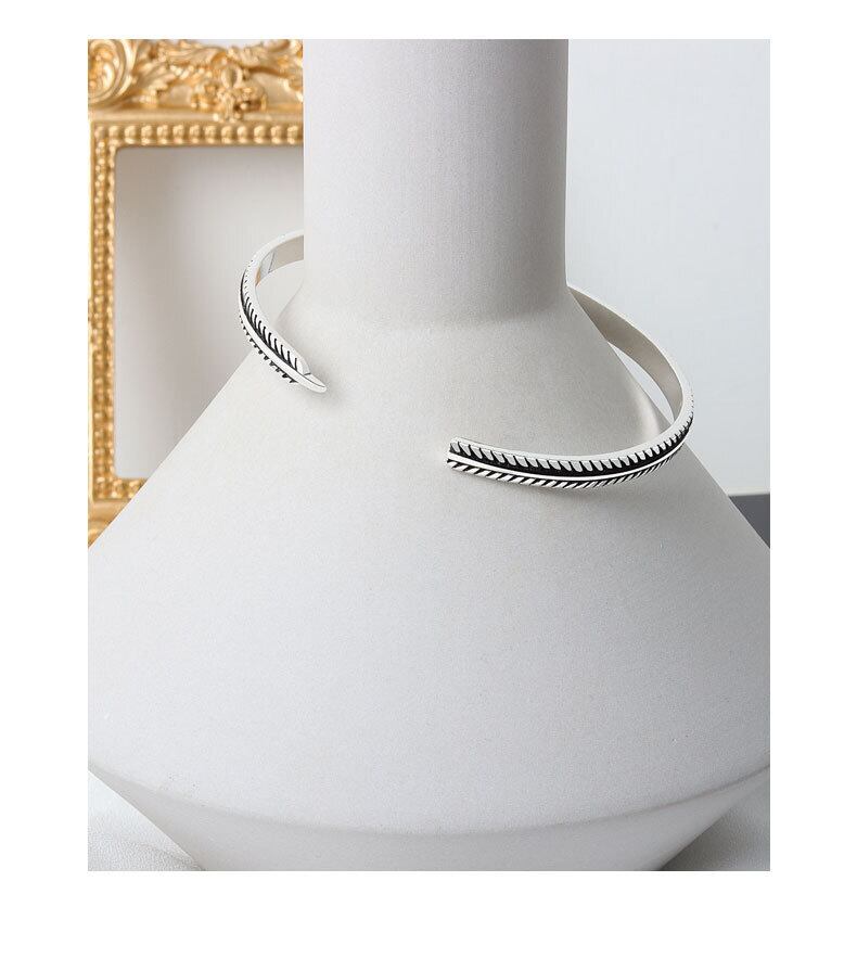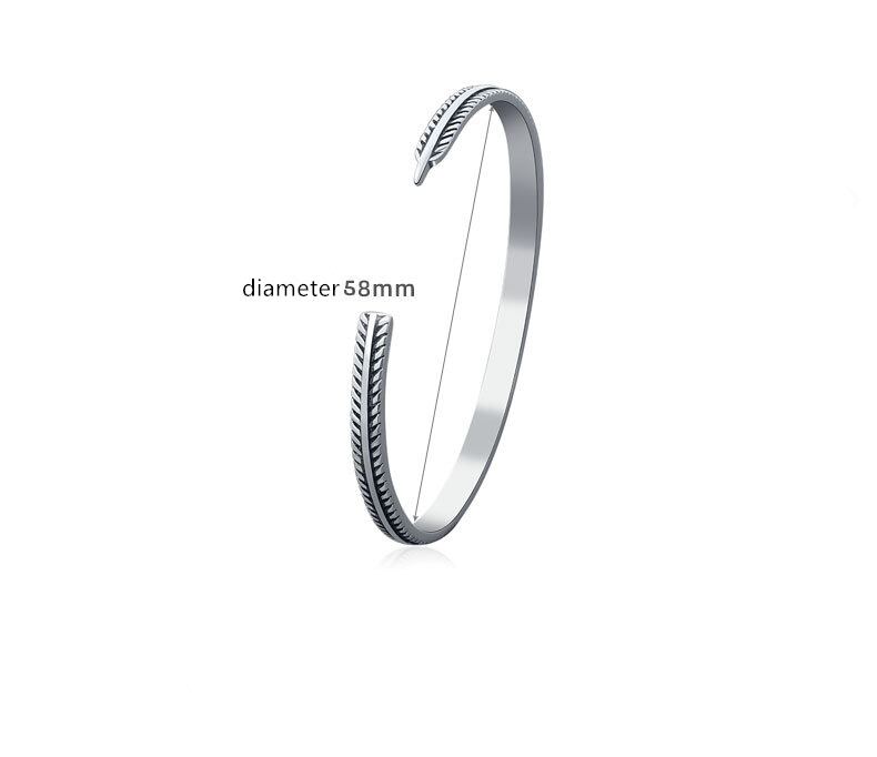 LIVVY タイシルバーカラーリーフブレスレットオープンカフバングルレディースメンズレトロ気質シンプルジュエリー 銀