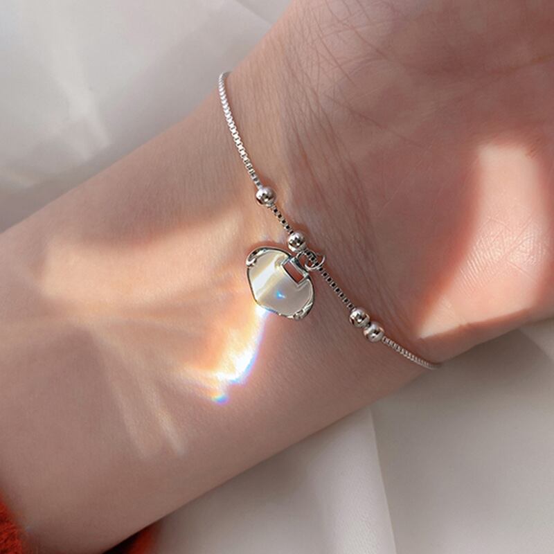 LIVVY シルバーカラーハートクリスタルロックブレスレットユニーク絶妙バングル誕生日パーティー宝石類ギフト 銀