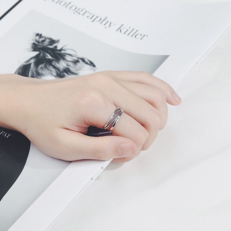LIVVY シルバーカラー幾何学的オープニングリング調節可能シンプル手作りパーティージュエリートレンド アジャスタブル 指輪 銀