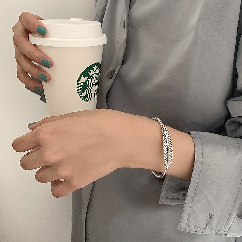 LIVVY シルバーカラー葉ブレスレットトレンディクリエイティブ絶妙パーティージュエリーギフト 銀