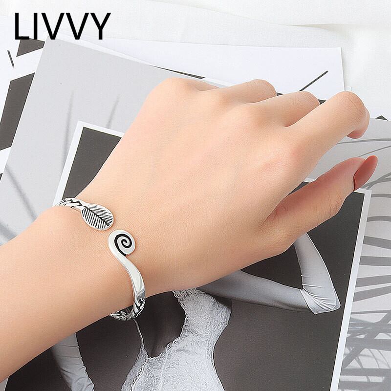 LIVVY シルバーカラー孔雀羽織ブレスレットカップルオープン調節可能トレンディパーティージュエリーギフト アジャスタブル 銀