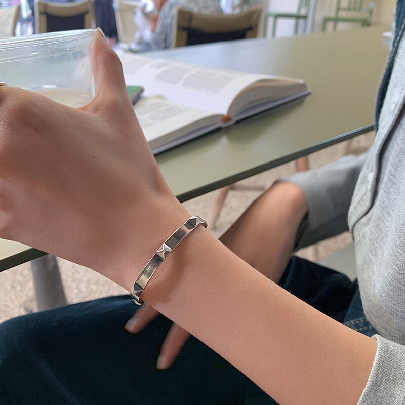 LIVVY タイシルバーカラー幾何学的リベットブレスレット男性レトロクリエイティブオープニングジュエリーアクセサリーパーティーギフト 銀