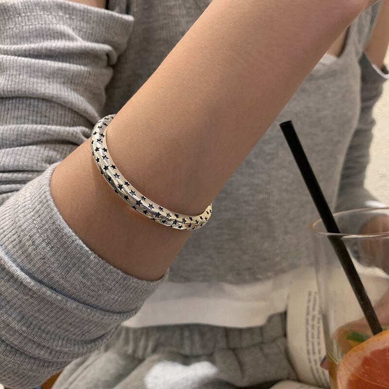 LIVVY ミニマリスト ブラック スター パンク オープニング 調節可能ブレスレット & バングル 気質 ジュエリー アクセサリー アジャスタブル