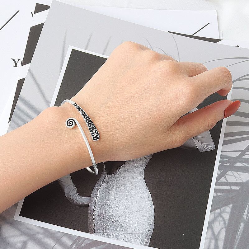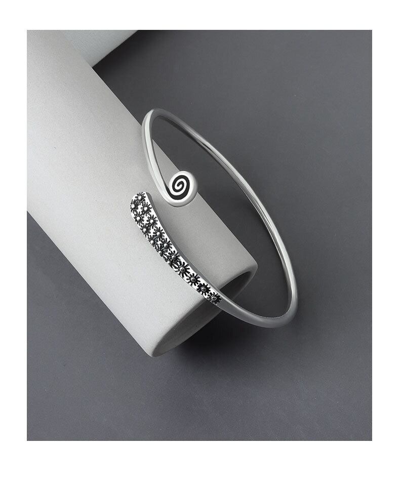 LIVVY シンプルタイシルバーカラー絶妙葉と花オープン調節可能ブレスレットパーティージュエリー アジャスタブル フラワーデザイン 銀