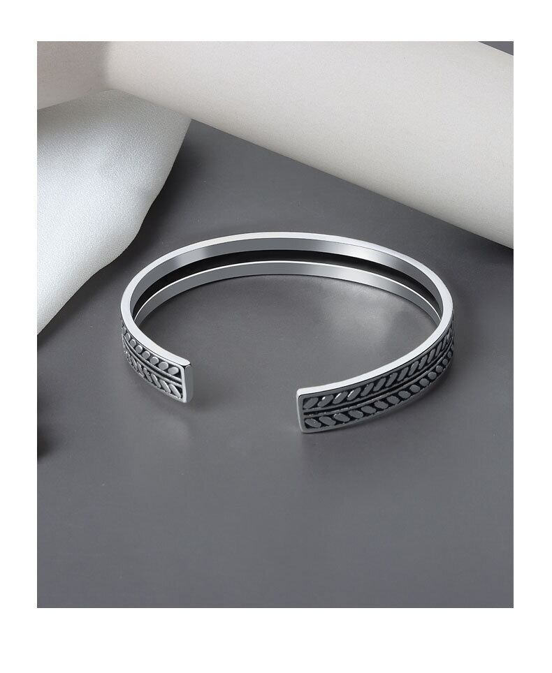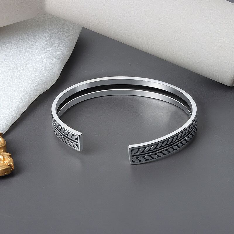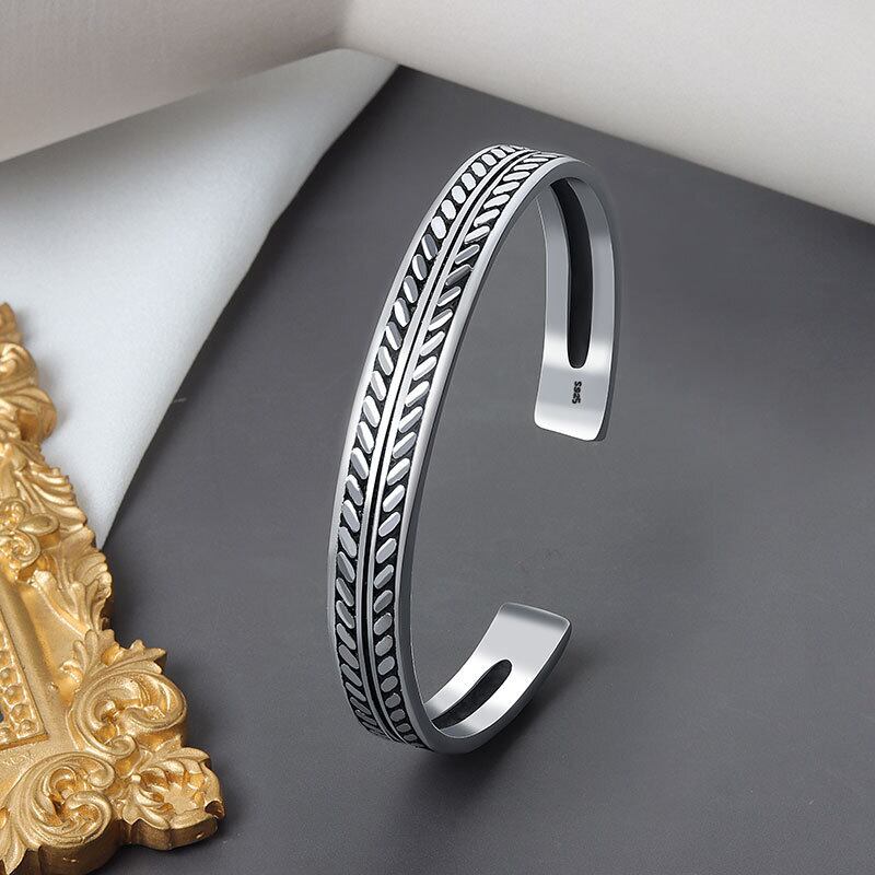 LIVVY タイシルバーカラー葉織りブレスレットオープン調節可能カフバングル男性絶妙シンプルジュエリーギフト アジャスタブル 銀