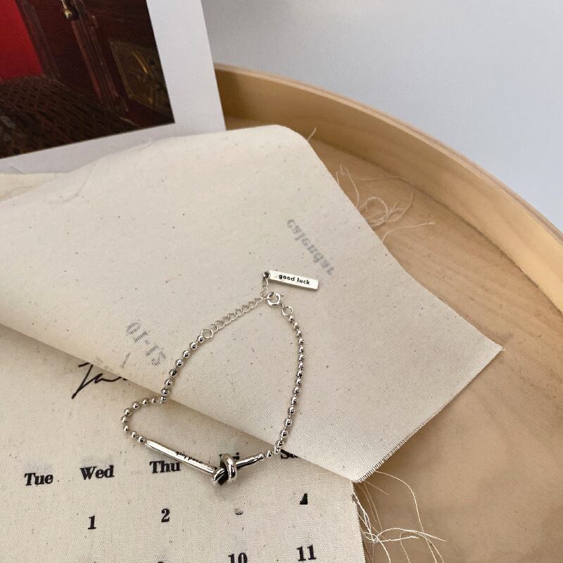 LIVVY タイシルバーカラークリエイティブシンプル幾何ノットブレスレットトレンディビーズチェーン誕生日パーティー宝石類ギフト 銀