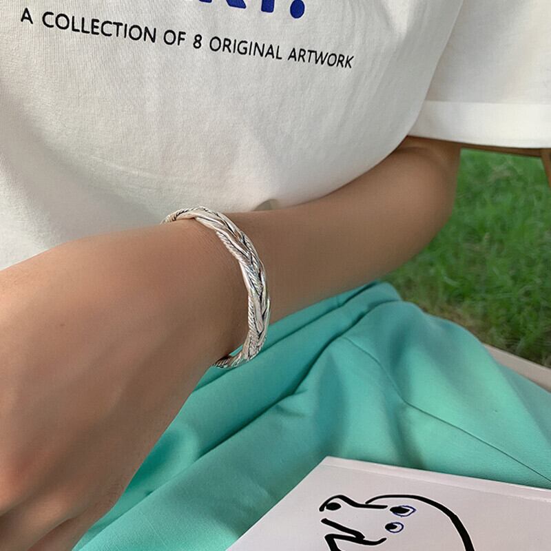 LIVVY シルバーカラーツイスト織ブレスレットレトロ手作り絶妙ユニークオープニングジュエリーギフト 銀