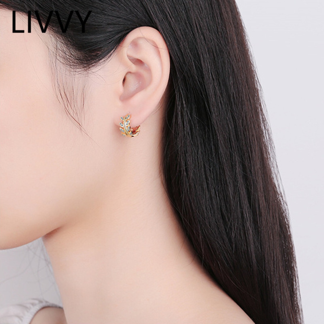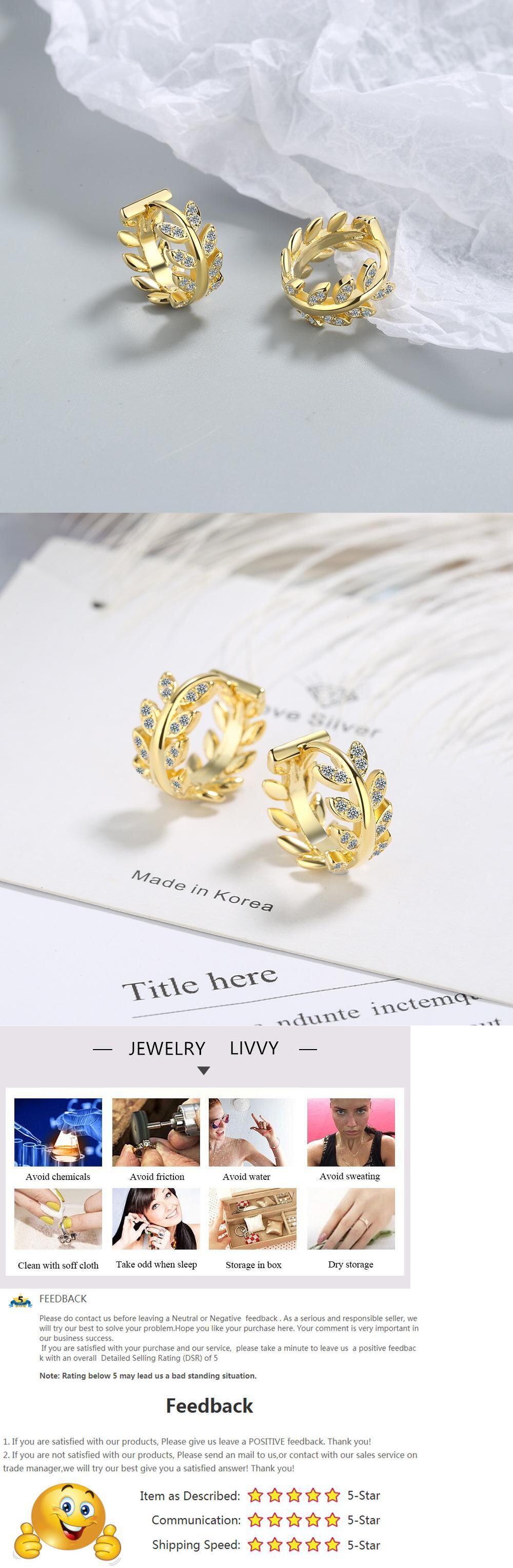 LIVVY シルバーカラー ホットリーフ フルジルコン フープイヤリング ユニークジュエリー 指輪 銀