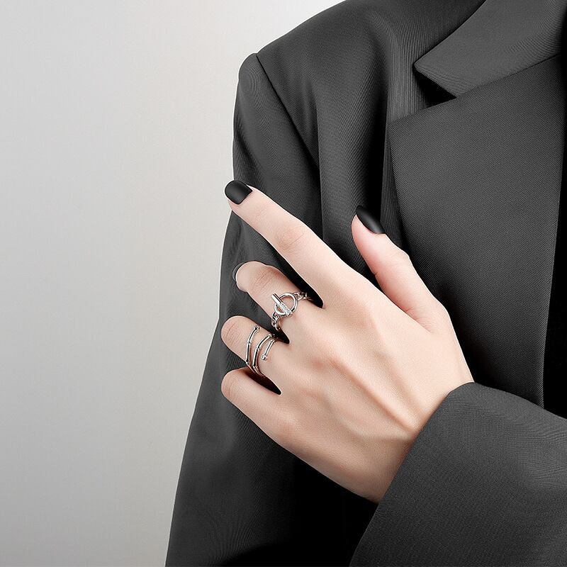 LIVVY シルバーカラー多層巻きクロスリングオープンフィンガーリングジュエリーギフトトレンド 指輪 銀
