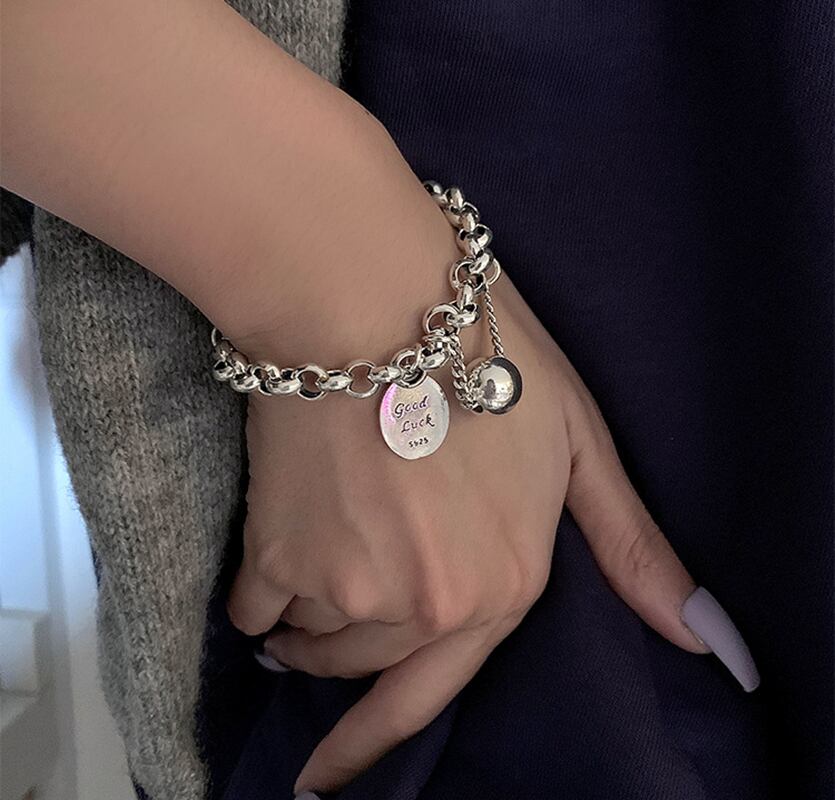 LIVVY 幸運ボールペンダントブレスレットタイシルバーカラーレトロ気質ジュエリー誕生日プレゼント 銀