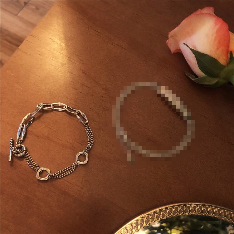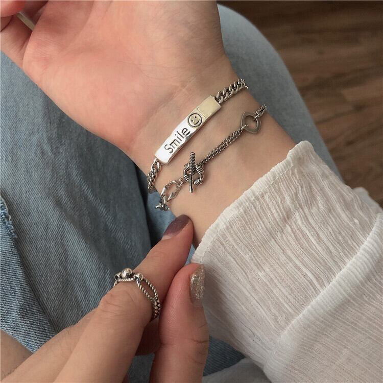 LIVVY タイ シルバーカラー 笑顔 中空 ラウンド ブレスレット ハンドメイド パーティー アクセサリー ジュエリー 銀