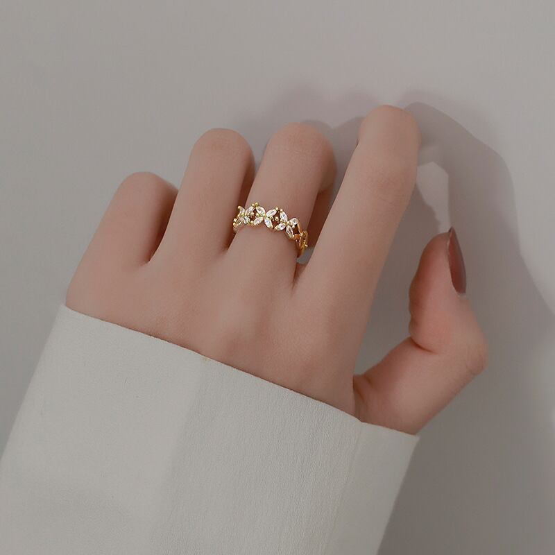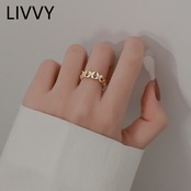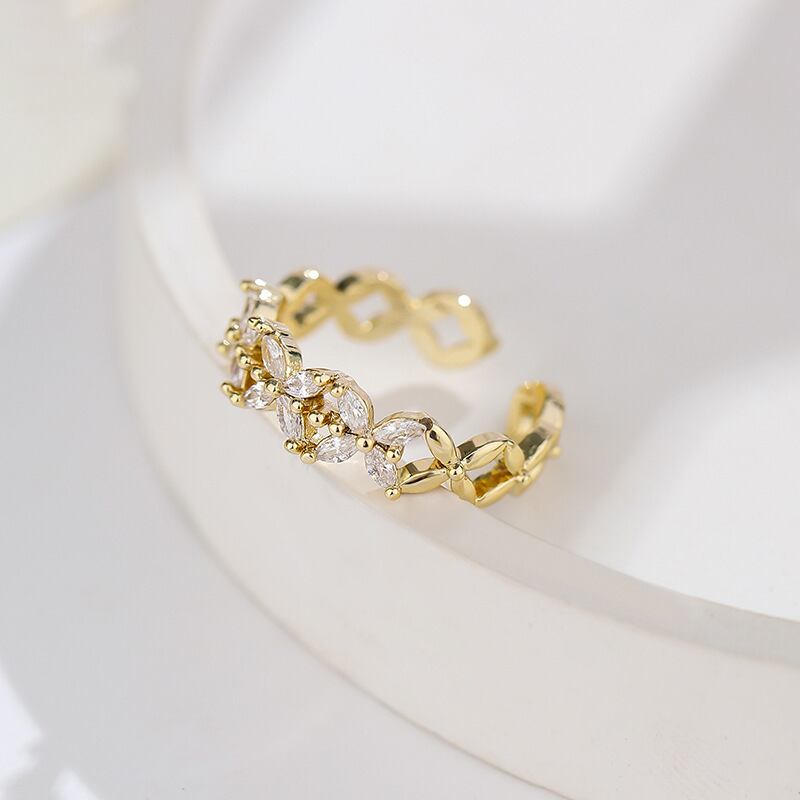 LIVVY ゴールドカラーシンプルクリスタルジルコンオープニング手作りリングファインウェディング花嫁ジュエリー 指輪