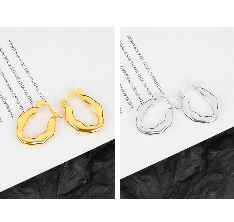 LIVVY シルバー色不規則 U 字型イヤリング気質手作り誕生日パーティーアクセサリーギフトジュエリー 指輪 銀