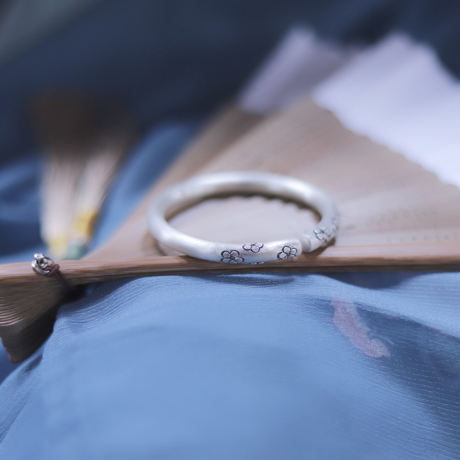 LIVVY シルバーカラーシンプル花柄ブレスレットトレンディチャームバングルウェディングパーティージュエリーギフト フラワーデザイン 銀