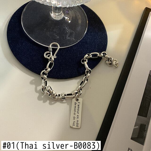 LIVVY タイ シルバー カラー シンプル スクエア タグ レター ブレスレット レトロ ユニーク ジュエリー 銀 スクウェア