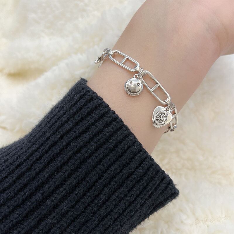 シルバー色人格厚みハートクロス笑顔ペンダントブレスレットインパンクヒップホップパーティージュエリーギフト 銀