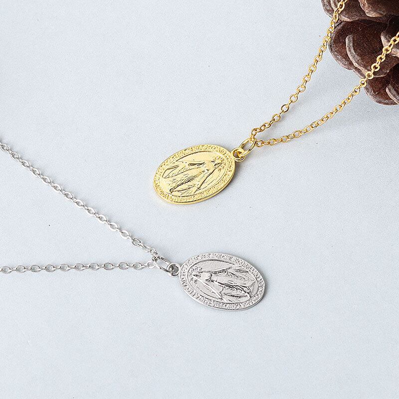LIVVY シルバーカラー レディース ジュエリー ミニマリスト トレンディ オーバル ペンダント ネックレス レース 銀