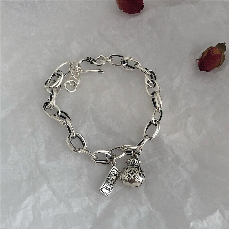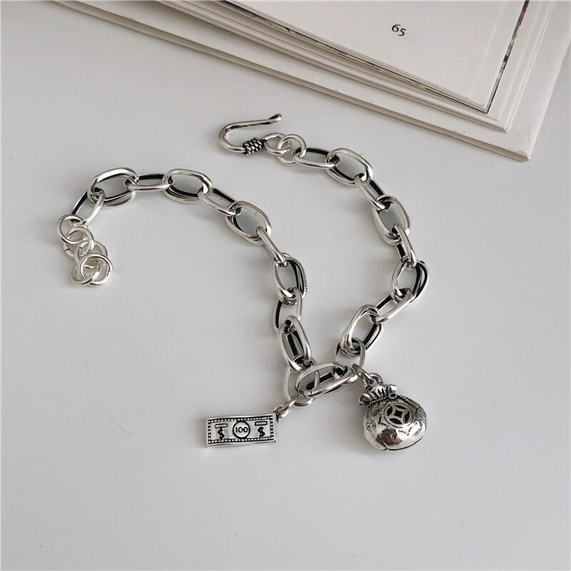 LIVVY シルバーカラー Bouble 層ドル財布バッグチェーンブレスレットラッキーシンプルユニークチャームジュエリーカップルギフト 銀 パスケース