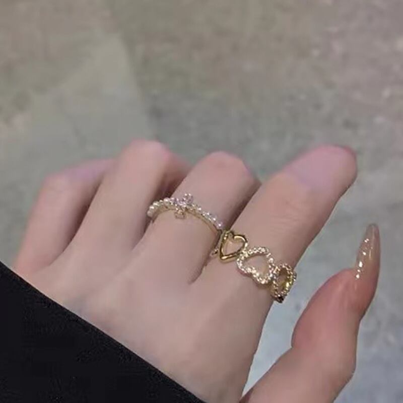 LIVVY シルバーカラートレンディ中空愛ハート形調節可能リングガールズキュービックジルコンウェディングジュエリー アジャスタブル 指輪 銀