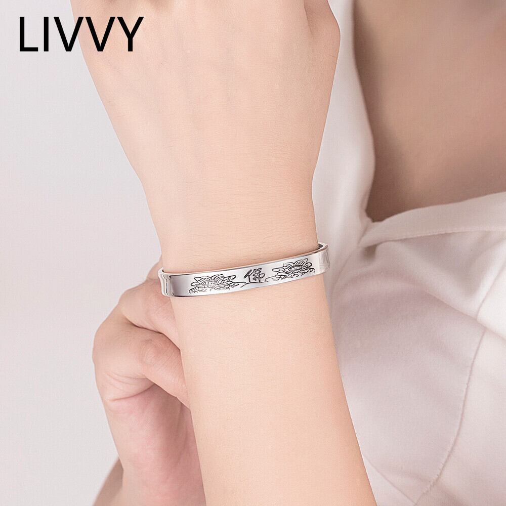 LIVVY ly 到着タイシルバーカラー蓮パターン経カフブレスレット宗教 Accessorie シンプルジュエリー アクセサリー 銀