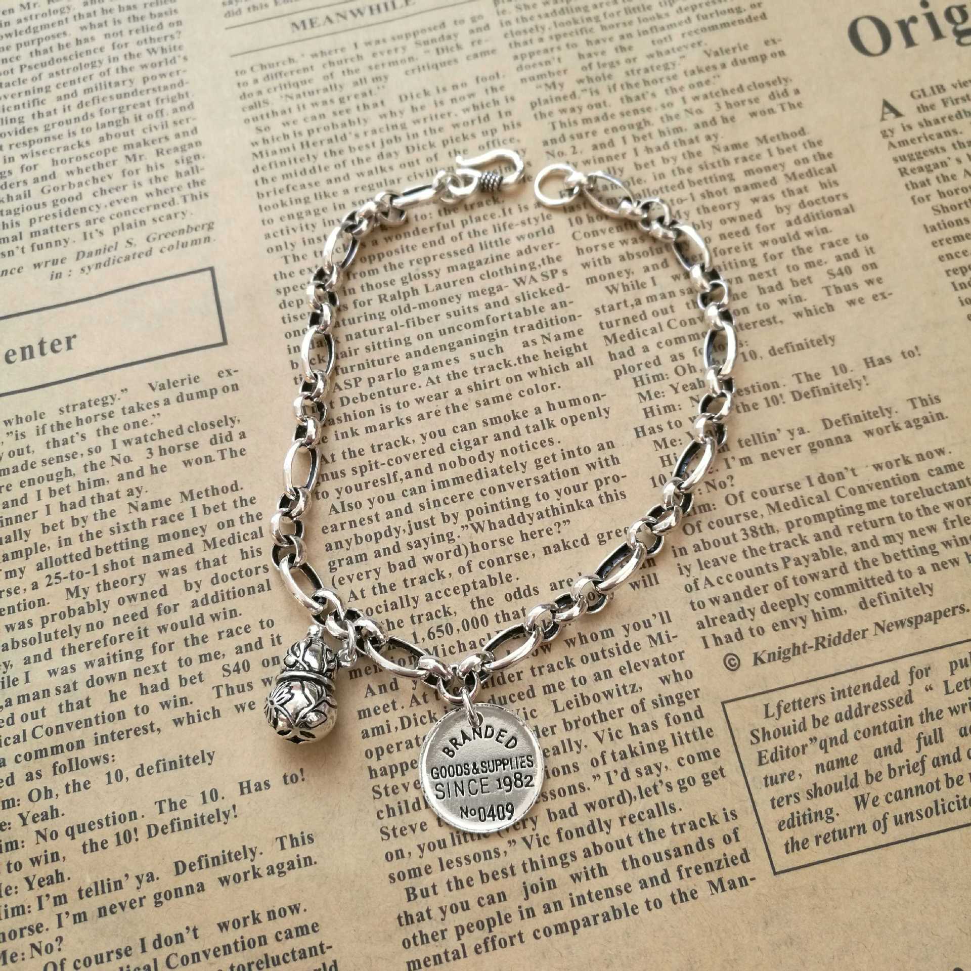 LIVVY タイシルバーカラーラウンドレターひょうたんペンダントブレスレット男と女気質ジュエリー 銀