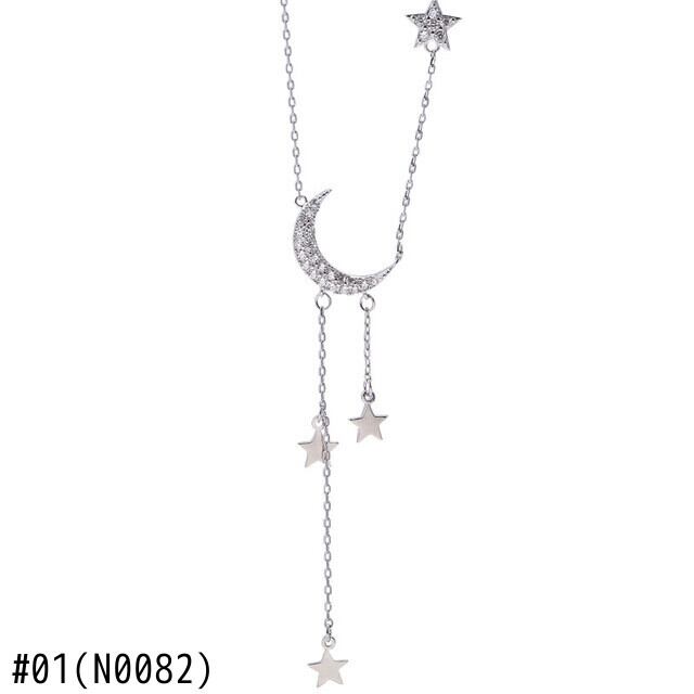 LIVVY シルバーカラーウェディングジュエリースウィートスタームーンロング Tel ネックレスシンプルエレガンス誕生日プレゼント レース 大人ガーリー キュート カジュアル 銀