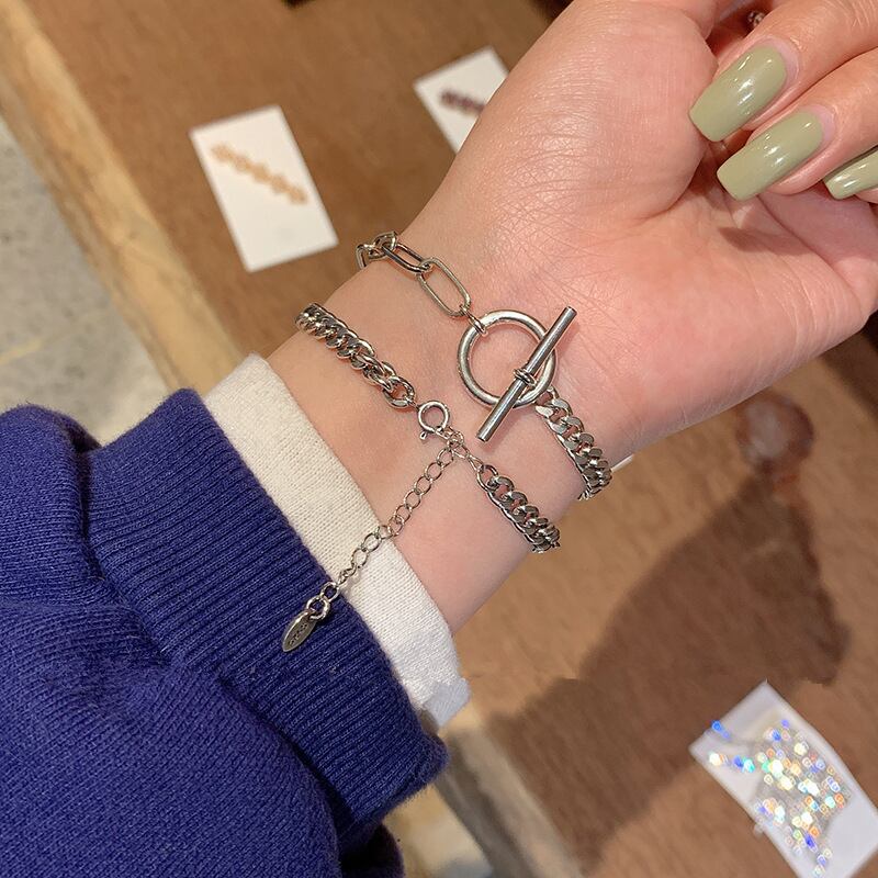 LIVVY タイ シルバーカラー ダブルサークル クマ ペンダント ブレスレット シンプル レトロ ハンドメイド トレンディ パーティー ジュエリー ギフト 銀