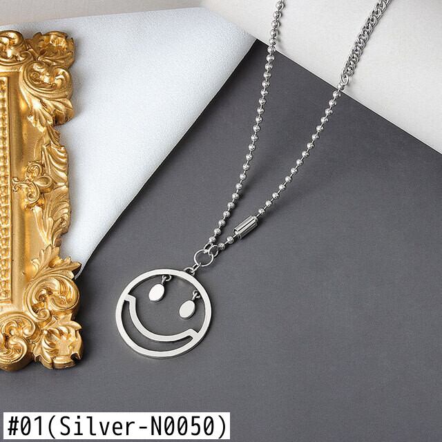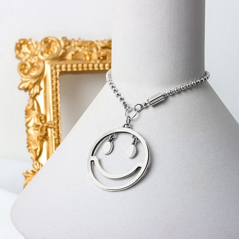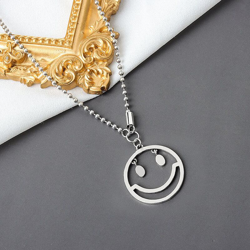 LIVVY シルバーカラーラウンドペンダントネックレス男性中空おかしい笑顔顔シンプルトレンディ誕生日パーティー宝石類ギフト レース 銀