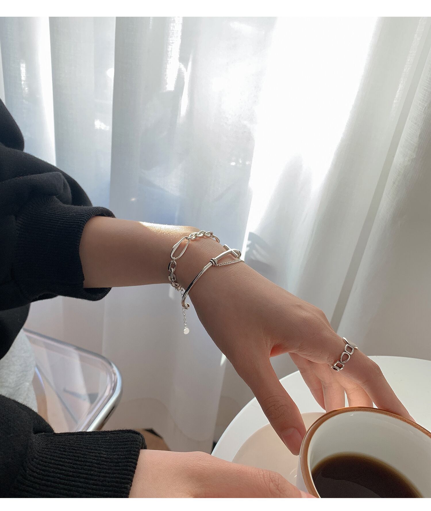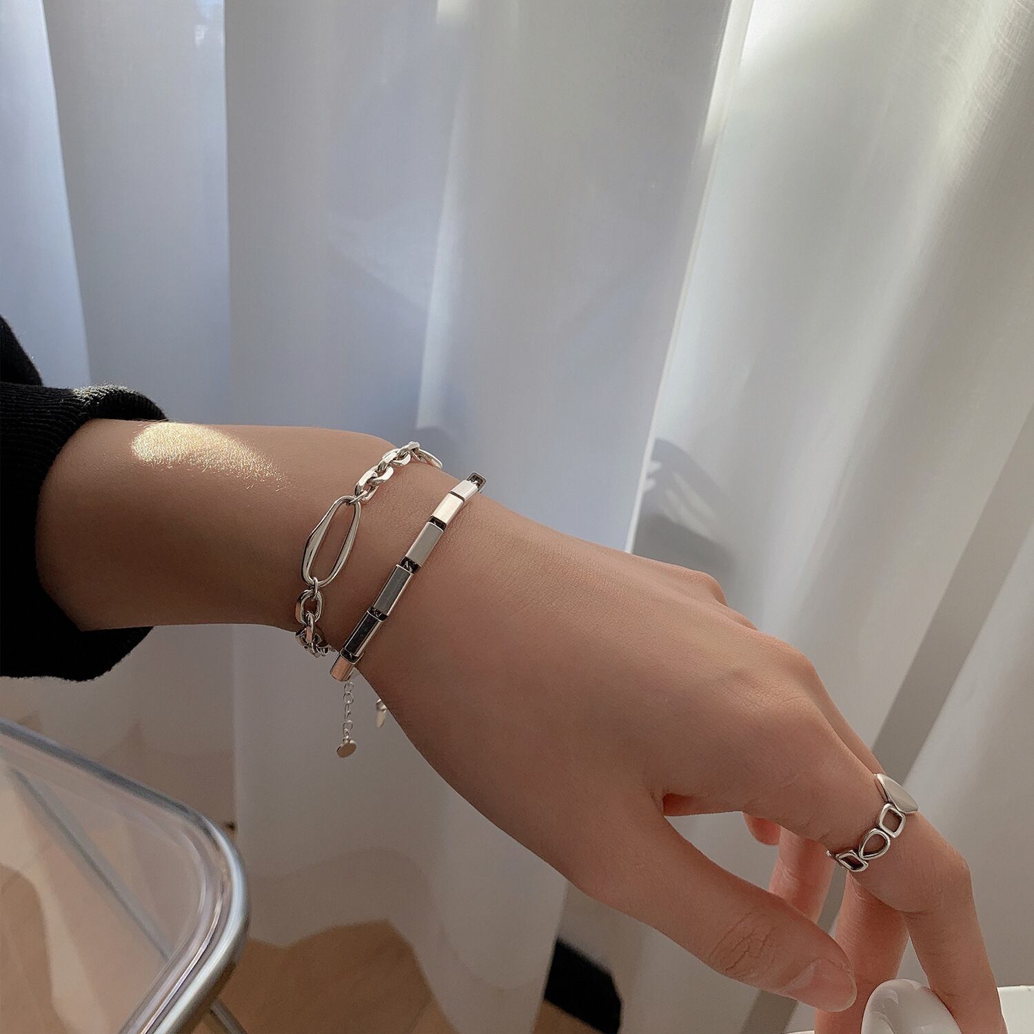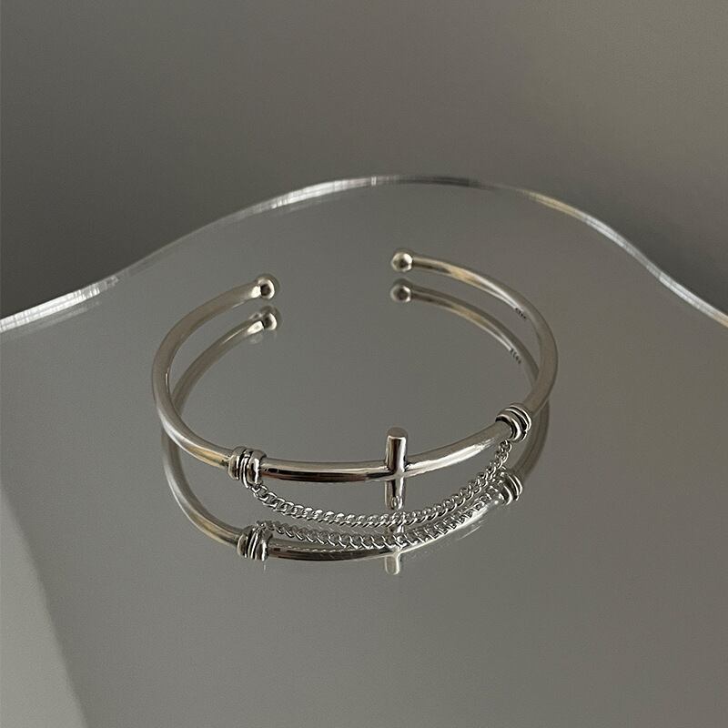 LIVVY シルバーカラークロス Tels チェーンスクエアブレスレットトレンディクリエイティブシンプルパーティージュエリーギフト 銀 スクウェア