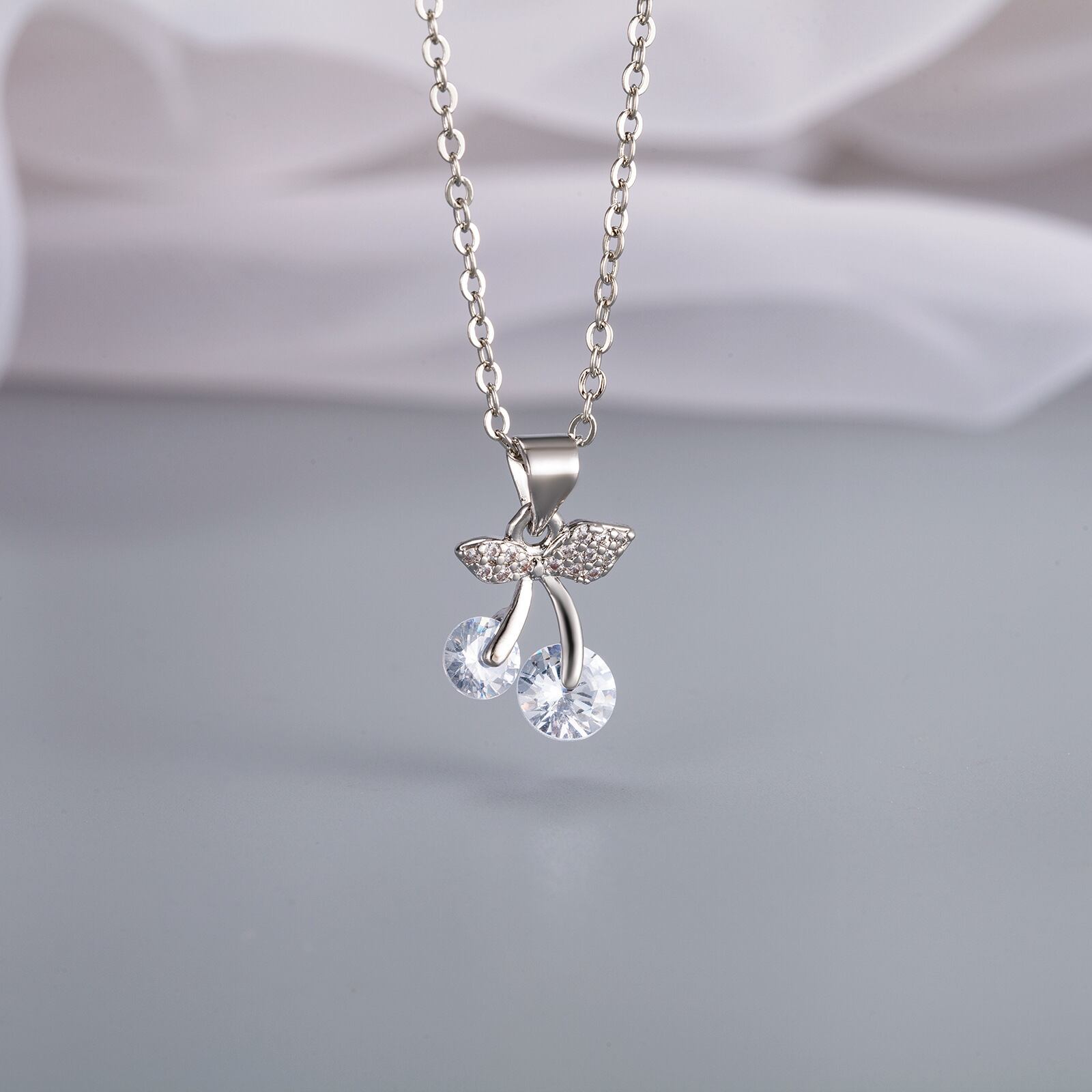 ;IVVY シルバーカラー ホット キュート スウィート チェリー ペンダント ネックレス 絶妙ジュエリー レディース レース 大人ガーリー カジュアル 銀